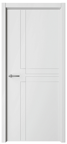 Эта модель сочетает строгий минимализм с изящными акцентами: стильная стеклянная вставка придаёт двери неповторимый характер, а матовая поверхность сохраняет лёгкость и создаёт динамичную, современную эстетику без излишней перегрузки.