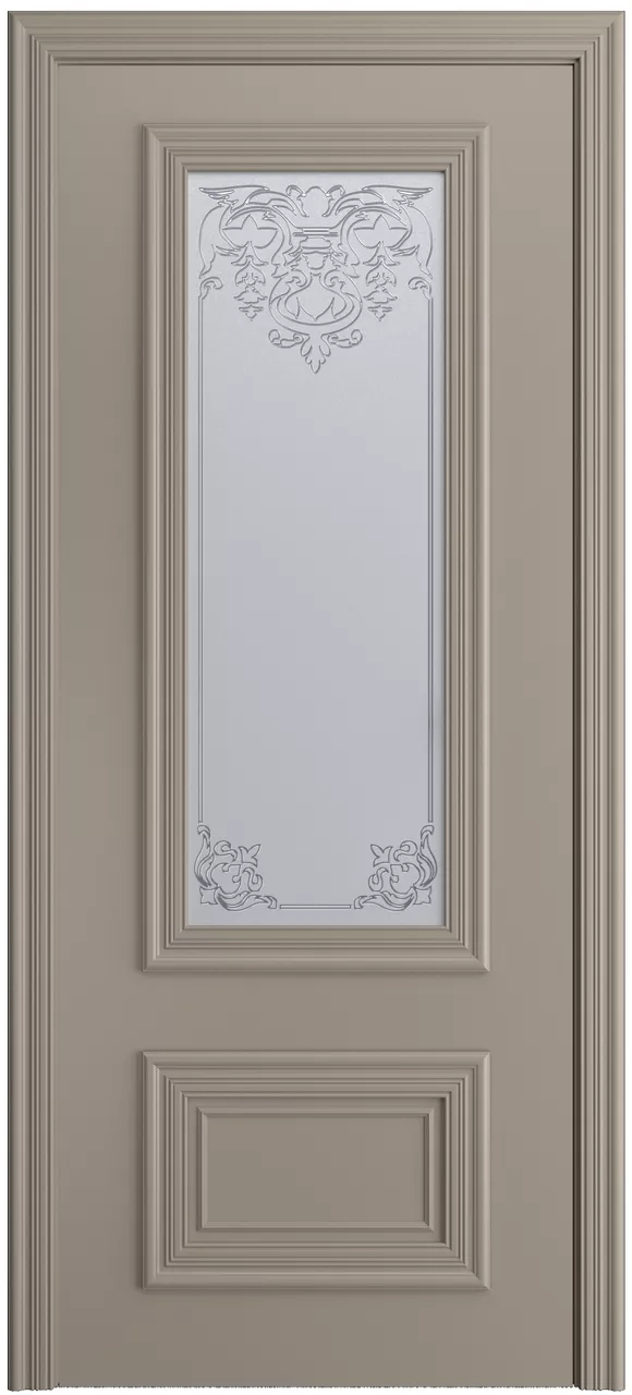 Дверь Скалино-5 ДО имеет каркасно-щитовую конструкцию с фрезерованной поверхностью полотна, имитирующей филенки, и цельным багетом. Модель покрыта эмалью и остеклена рефлективом либо сатинатом. Также на выбор можно нанести фотопечать либо графировку на стекло.